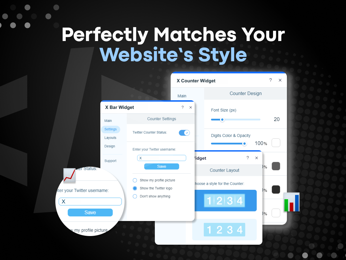 X (Twitter) Followers Counter lets you display your follower count in a stylish, fully customizable counter that updates automatically. Match your site’s branding by adjusting colors, opacity, layouts, borders, fonts, backgrounds, and sizes for seamless integration. Choose between minimal, modern, or bold designs that capture attention while staying consistent with your site’s unique identity.